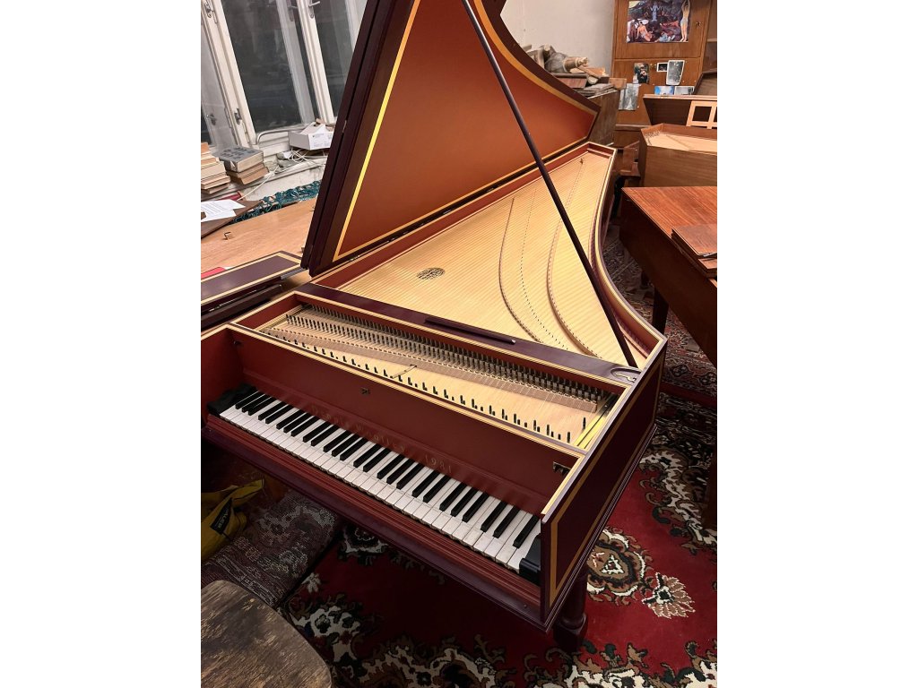 Einmanualiges flämisches Cembalo. Größeres Instrument mit kräftigem Klang, mit einer für ein einmanualiges Instrument ungewöhnlichen Disposition von 8,8,4 + Laute. Die Mechanik ist sehr präzise und angenehm, mit Springern aus Holz auf allen Registern. Die Tastatur ist mit Rinderknochen belegt, hat einen Umfang von FF bis g3 und ist mit einer Transpositionsvorrichtung ausgestattet. Als Plektren dienen Delrin. Dieses Instrument eignet sich sehr gut für anspruchsvolle Cembalisten, die sowohl auf Konzerten als auch zu Hause hohe Qualität unter ihren Fingerspitzen haben möchten.